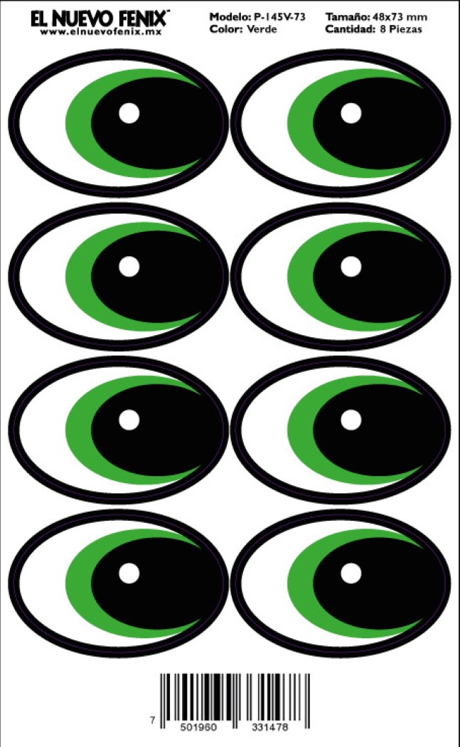 Planilla 145v-73 mm ojo verde 8 pzas. nacional 48 x 73 mm