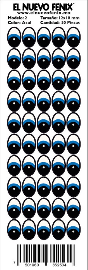 Planilla 2 ojo azul 50 pzas. nacional 12 x 18 mm