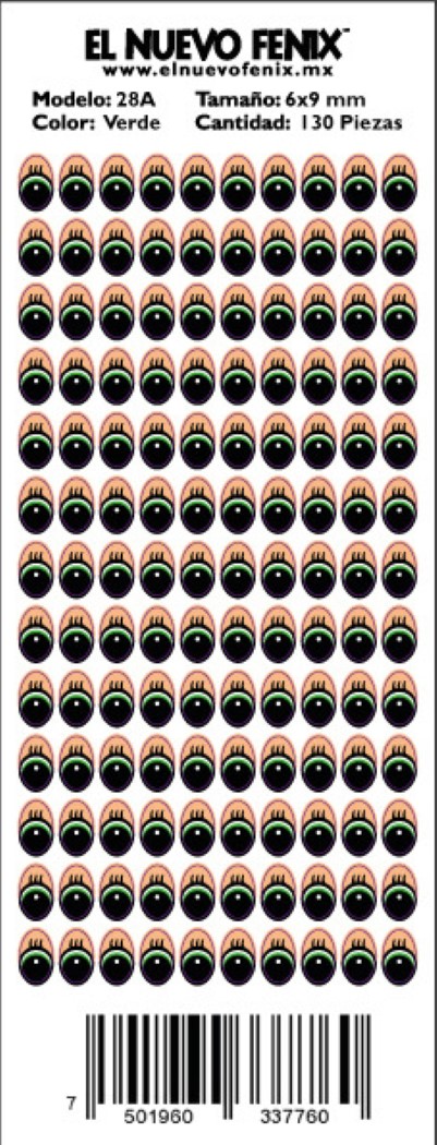 Planilla 28-a ojo verde 130 pzas. nacional 6 x 9 mm