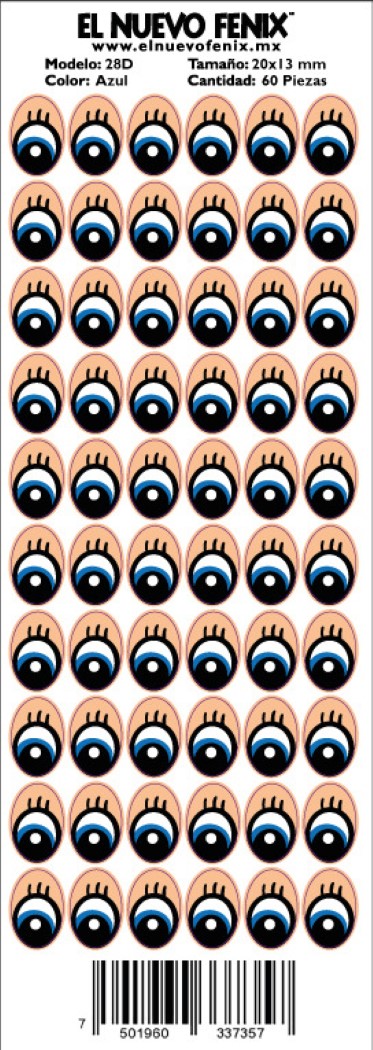 Planilla 28-d ojo azul 60 pzas. nacional 20 x 13 mm