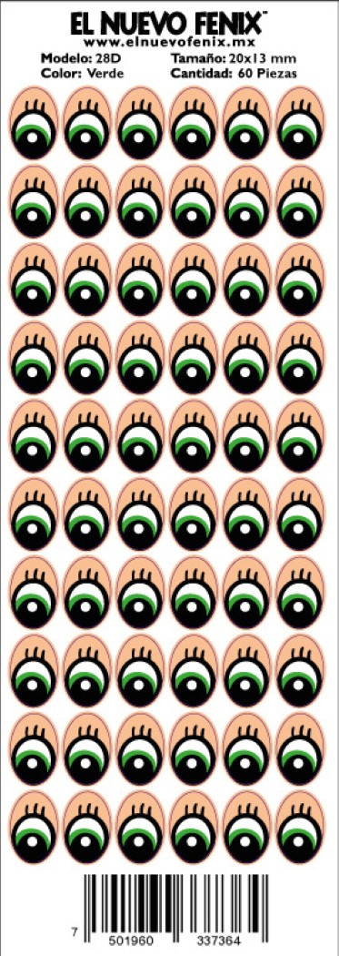 Planilla 28-d ojo verde 60 pzas. nacional 20 x 13 mm