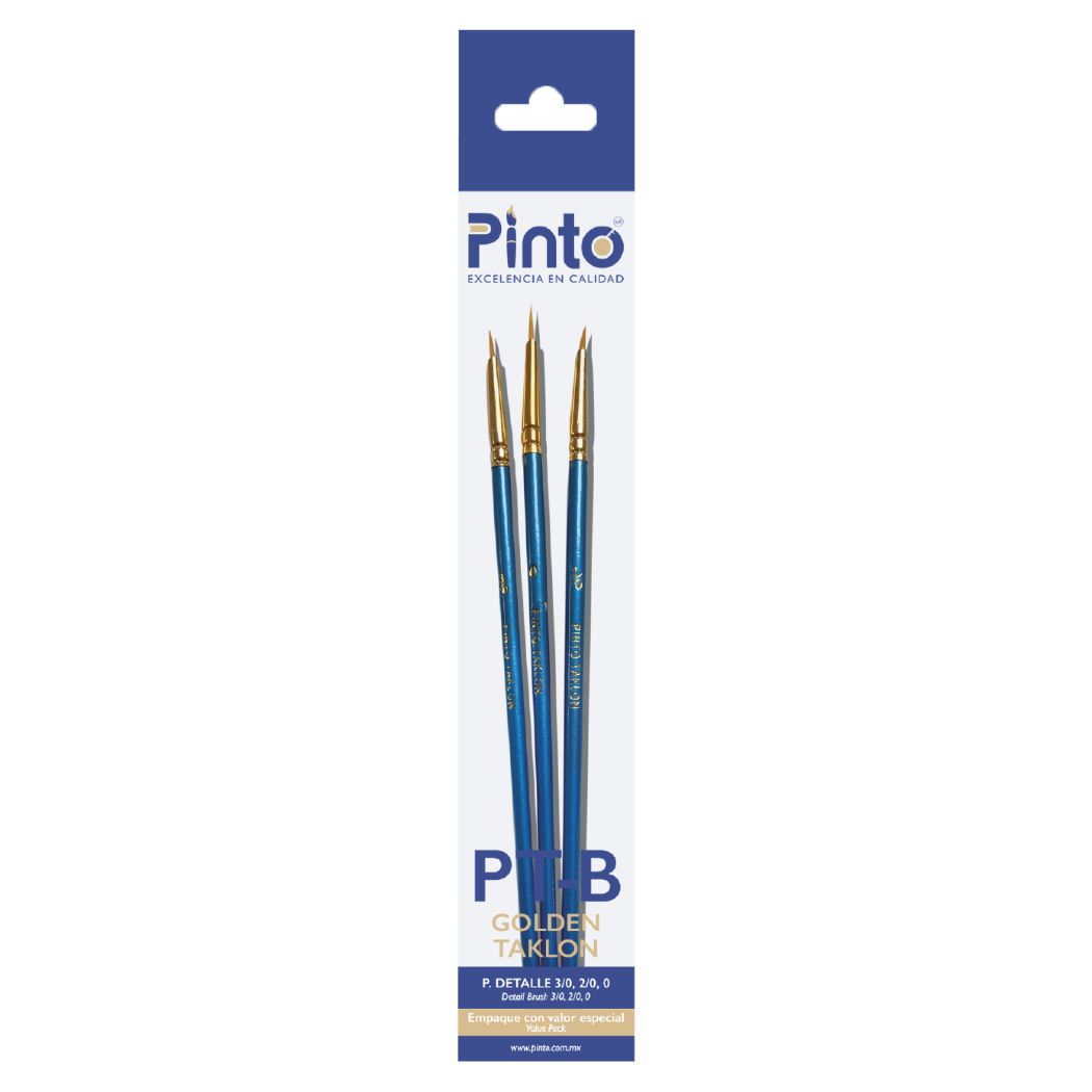 Ptb set pincel pinto taklon para detalle 3 p. dorado